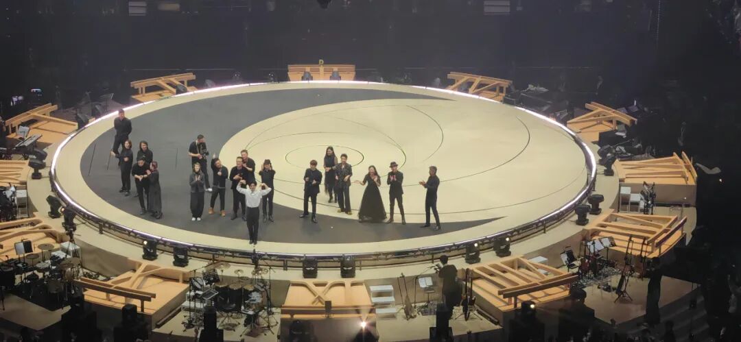 李健在舞台中间,乐手们围在舞台的四面八方。应援手环的外形和主舞台是一样的!