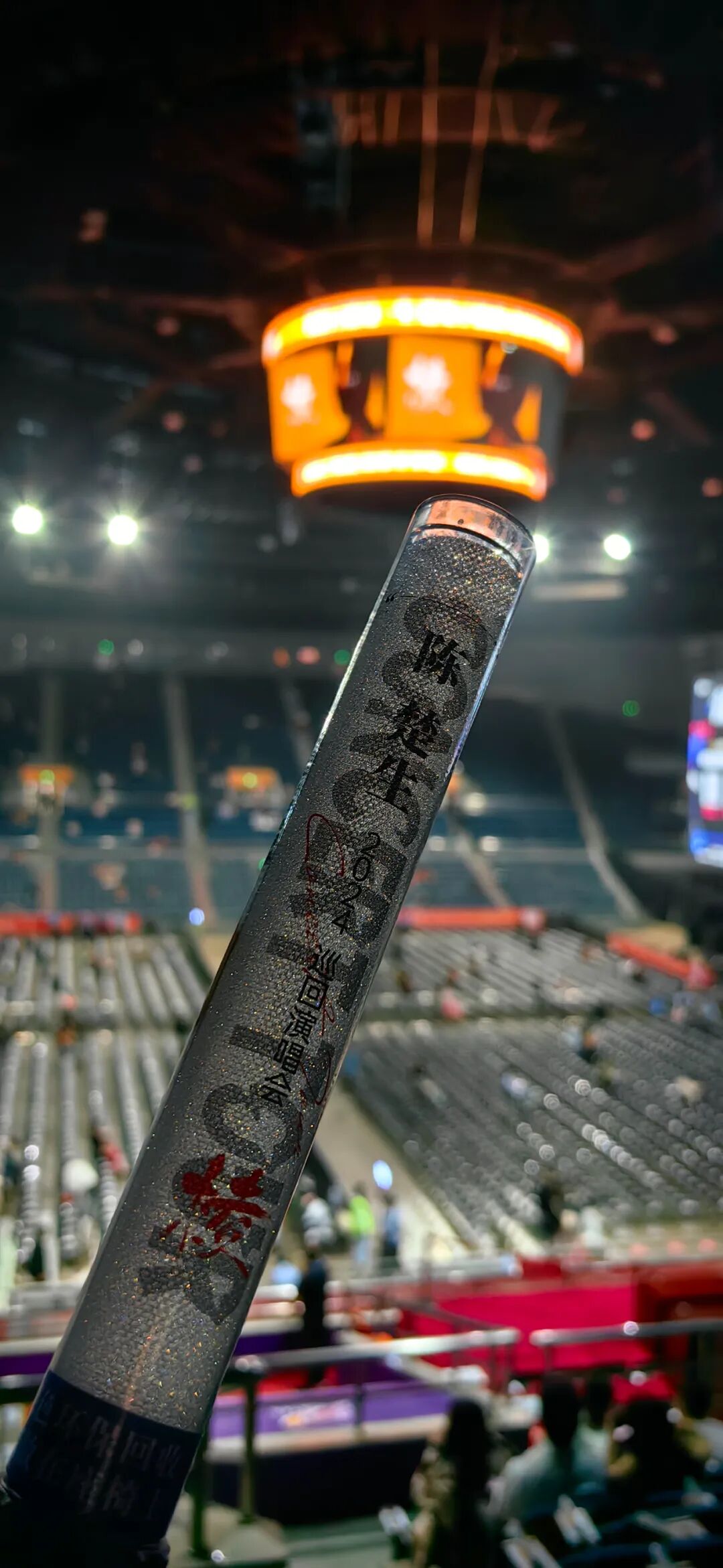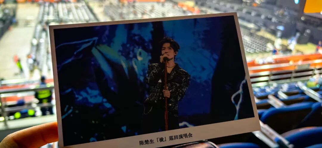 内场还空空荡荡,看台上也是。选错了入口,于是穿过了整排的座椅,坐下的瞬间碰掉了隔壁扶手上的荧光棒和卡片,一顿好找。