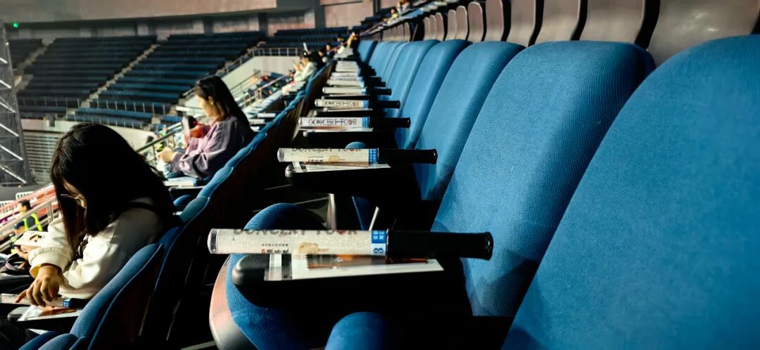 早早地走进体育馆,来到自己的位置上。
