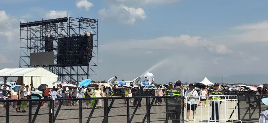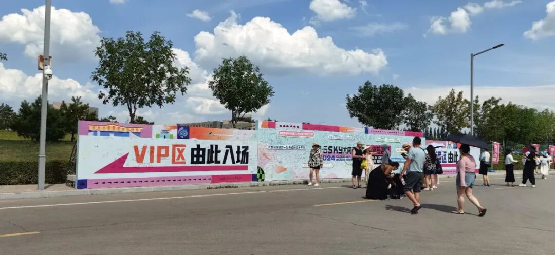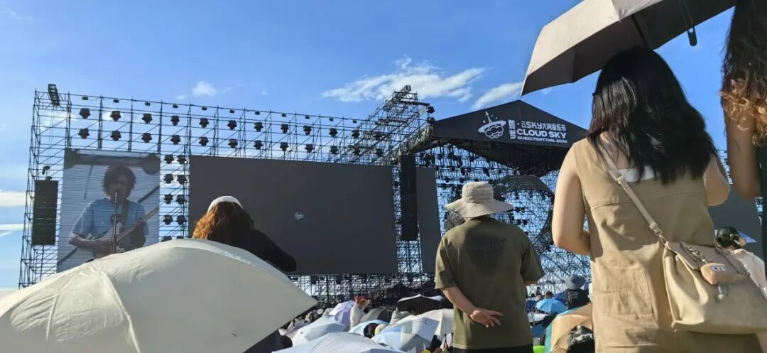 等朋友抵达,我们也开始入场,接受烈日的考验。因为是VIP票,可以安心在后排摆烂。选定位置,铺好地垫,钻到伞底,遮住烈日。