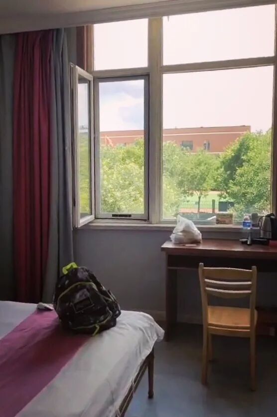 拎着打包的凉粉回到预定的小旅馆,从窗户望出去就是校园,绿树成荫,还有小操场。不像是短暂旅行而至,好像自己就住在这里似的..